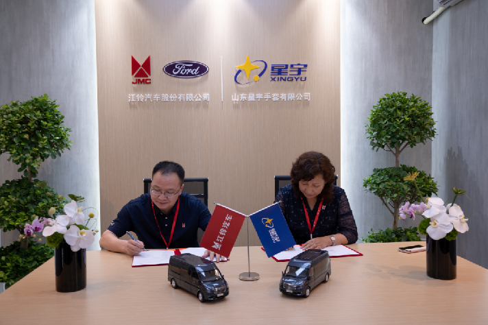 江铃汽车股份有限公司副总裁刘让坡,山东星宇手套有限公司副总经理高永红女士、国内营销中心大客户部部长周长松,以及双方代表共同出席。双方签署战略合作协议,跨出了合作共赢的重要一步。
